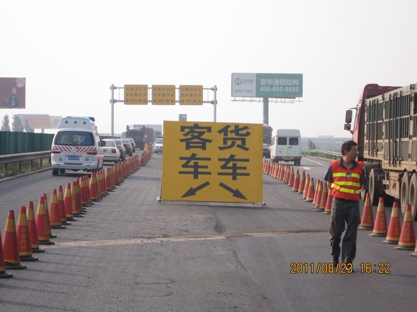 第一、對區(qū)域路網(wǎng)結(jié)構(gòu)要有一個清晰地了解,要明白經(jīng)過本路段的車輛情況,從而合理設(shè)置分流點,有效調(diào)控車輛行駛路線。就京張路而言,進京方向主要是蒙、晉、甘等省通過京藏高速、宣大高速及110國道、109國道、207國道進入京張段、京新高速以及110國道懷來至宣化段,高峰時段集中在下午四點到次日凌晨。出京方向則主要是從北京八達嶺高速和110國道來車,高峰時段集中在晚八點至次日上午九點。根據(jù)各條道路的資源情況,進京方向選擇丹拉高速與張石高速交匯的互通立交、宣大高速與京新高速交匯的互通立交設(shè)置分流點,同時在丹拉高速、張承高速、京張高速及宣大高速共計12個收費站對上道車輛進行管控,以此達到對進京車輛行駛路線進行調(diào)控的目的;出京方向分流的有效地點設(shè)置在京張高速98公里處的土木互通。這是我們做好施工組織方案的必要條件。