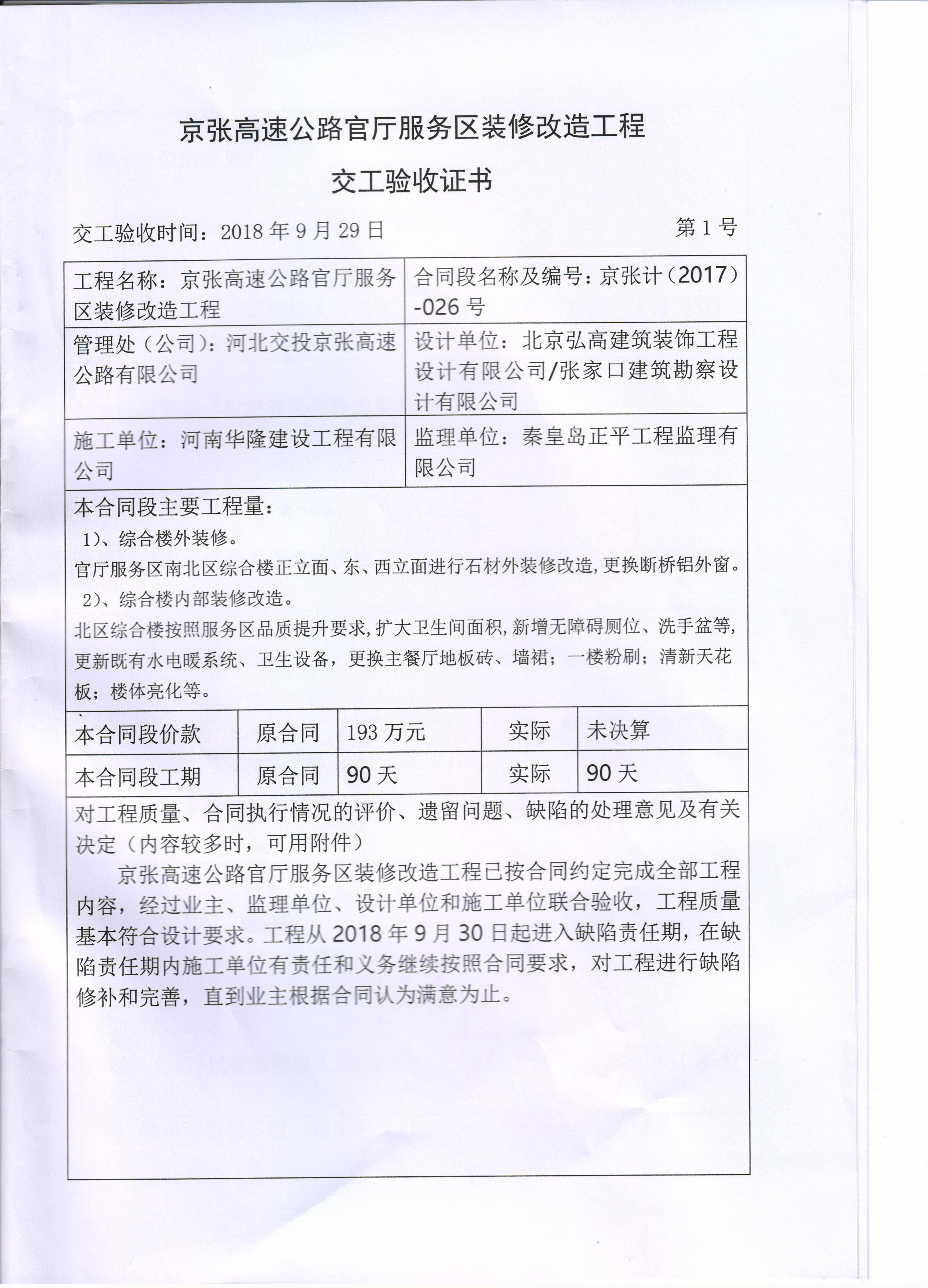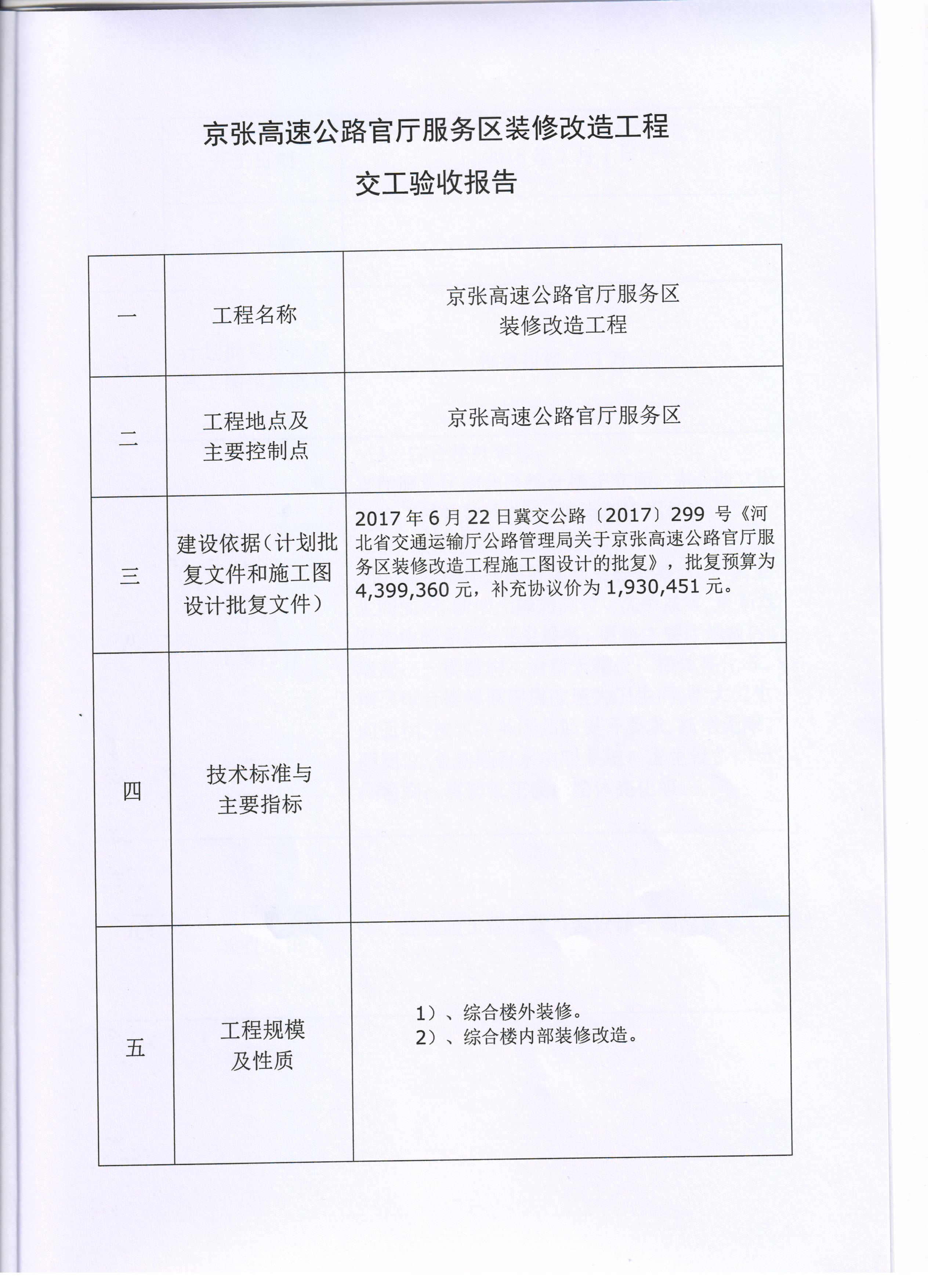 京張高速公路官廳服務(wù)區(qū)裝修改造工程交工驗(yàn)收報(bào)告