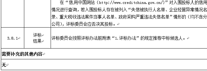 3.4在“信用中國”網(wǎng)站(http://www.creditchina.gov.cn/)中被列入失信被執(zhí)行人名單、企業(yè)經(jīng)營異常名錄、重大稅收違法案件當事人名單、政府采購嚴重違法失信名單(均不含分公司)及國家企業(yè)信用信息公示系統(tǒng)(http//www.gsxt.gov.cn/)中被列入嚴重違法失信企業(yè)名單(不含分公司)的投標人,不得參加投標。